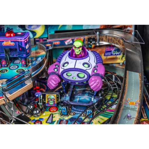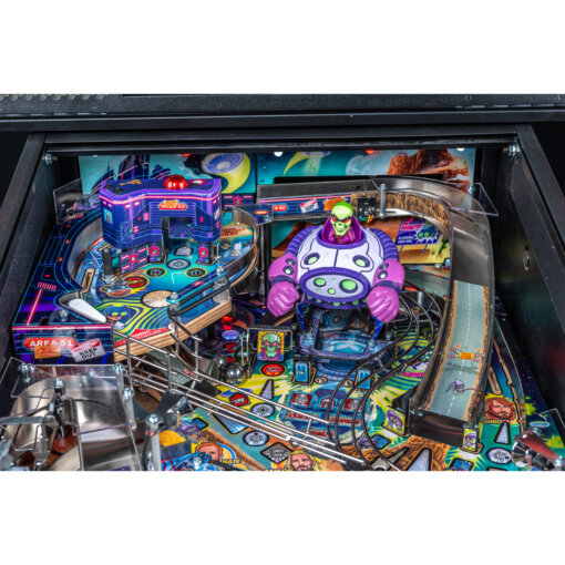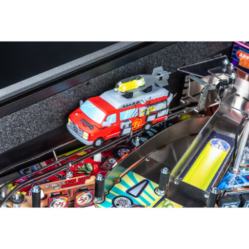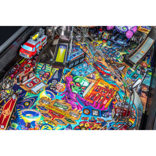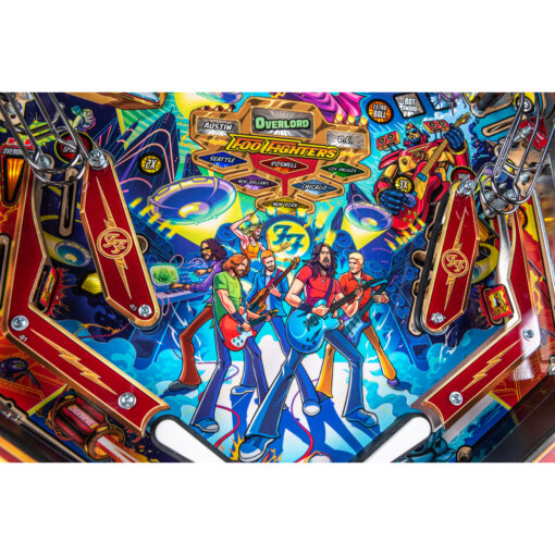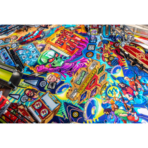 Players join the Foo Fighters on a mission to save humanity from the mysterious alien Overlord and his army of bots. The Premium model features a dynamic playfield with interactive toys such as the Foo Fighters Tour Van, which holds the ball and lets players choose tour destinations, and the sculpted Overlord ship with alien-abduction magnet effects.