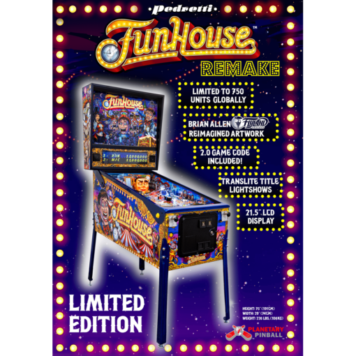 Built for durability and long-term performance, this Limited Edition model stands out with exclusive finishes and collector-focused enhancements. Whether you are expanding a private game room or adding a statement piece to your arcade collection, the Funhouse Remake Midnight LE delivers timeless fun with modern innovation and premium presentation. 🎮✨