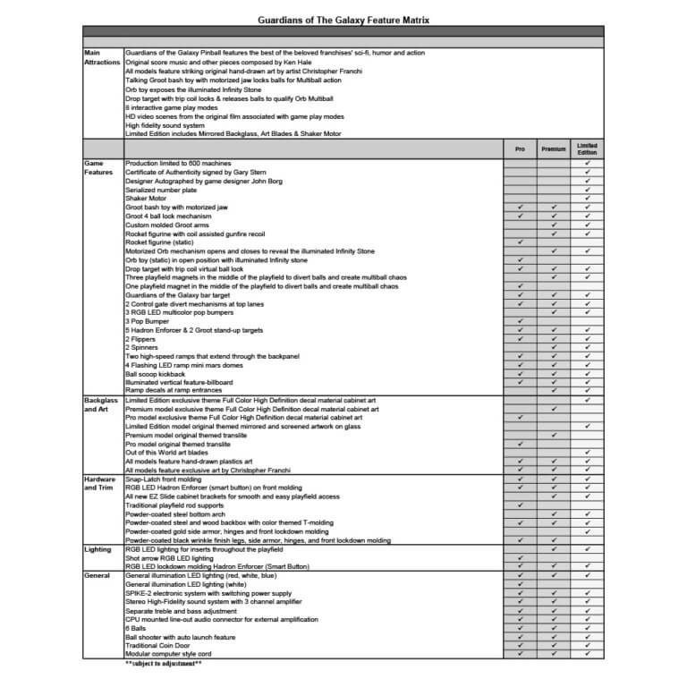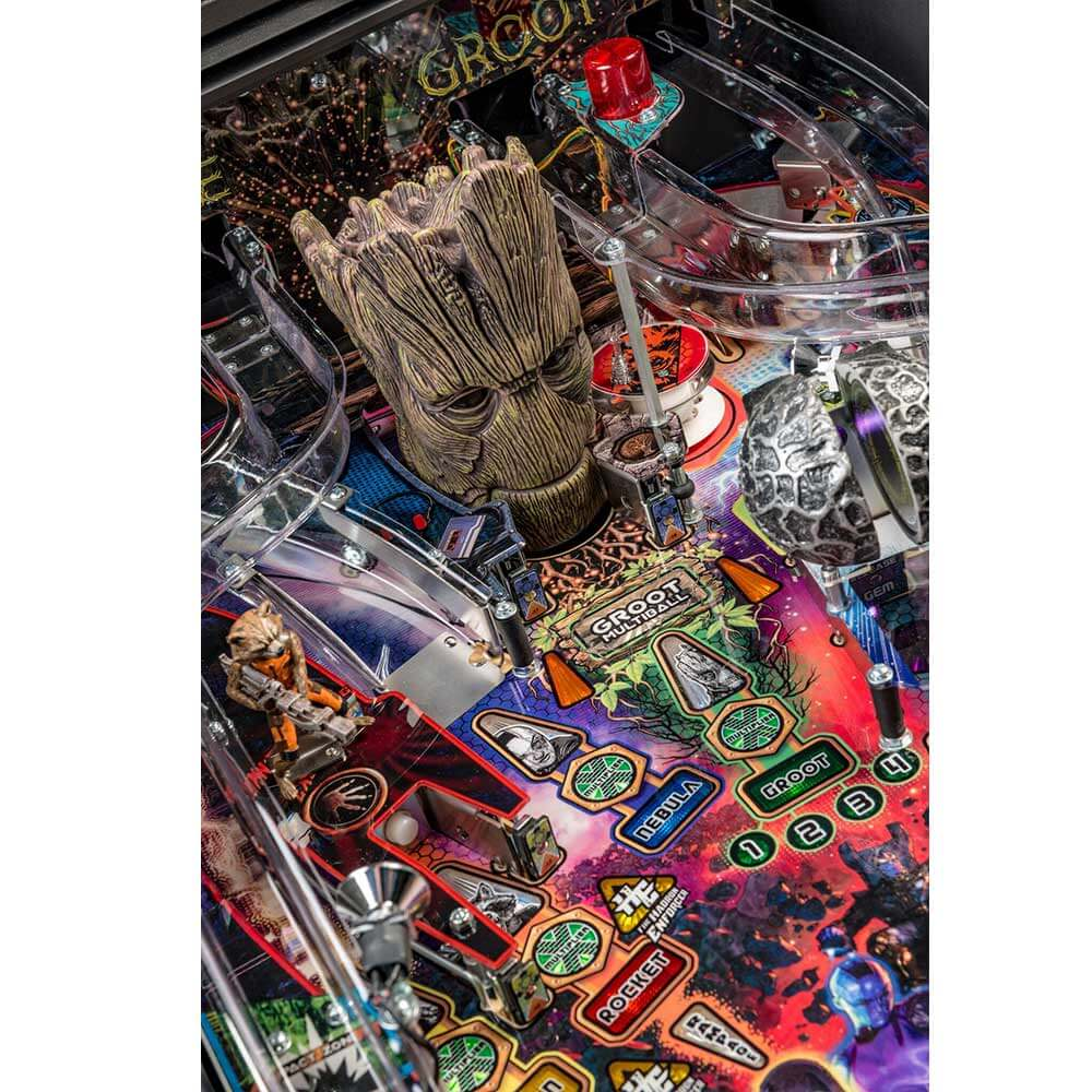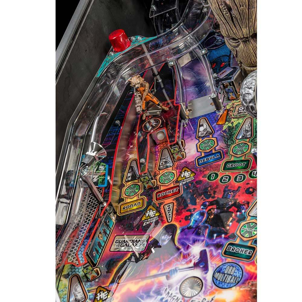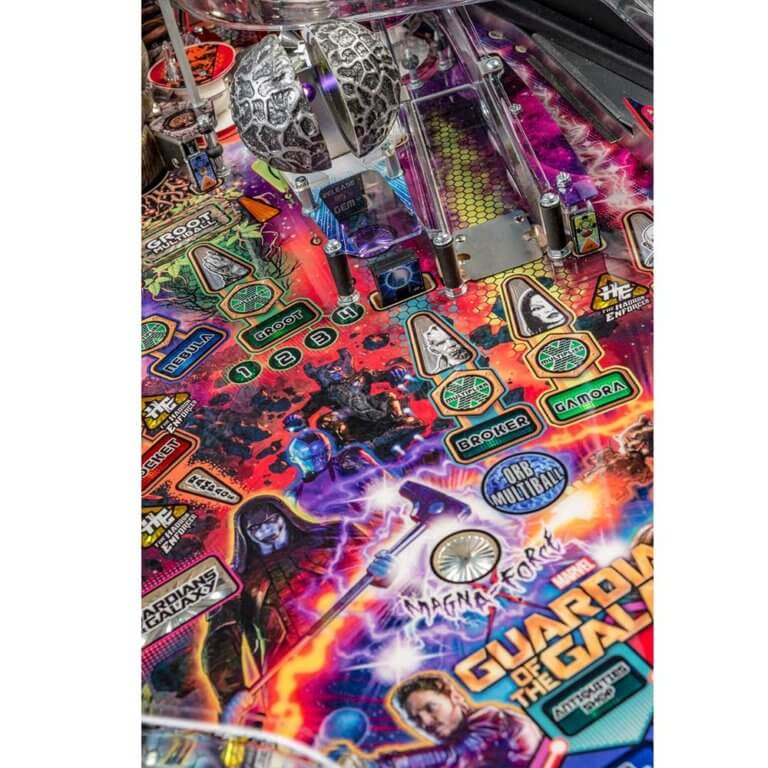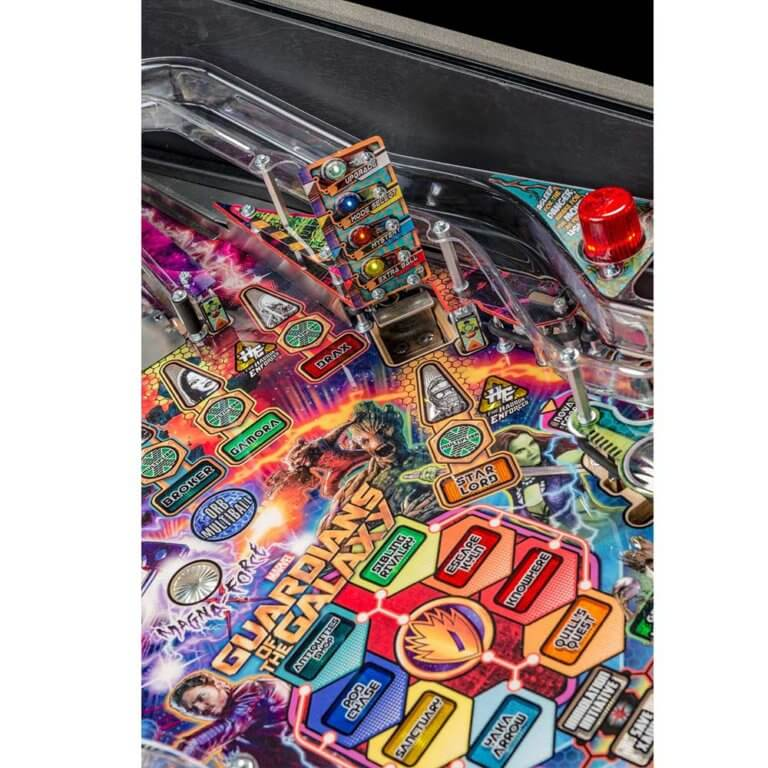 The Guardians of the Galaxy Pro model includes fast ramps, pop bumpers, and mission-based gameplay that keeps action moving at a high pace. Players activate multiball modes to increase scoring opportunities and unlock special features.