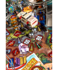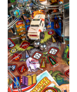 Players work through dynamic modes featuring iconic characters such as Dr. Alan Grant, while facing powerful threats like the relentless Tyrannosaurus Rex. The game includes smooth ramps, engaging target banks, and interactive playfield elements that create strong combo shots and satisfying ball flow. With mission-driven gameplay, multiball excitement, and immersive audiovisual effects, the experience stays intense and replayable.