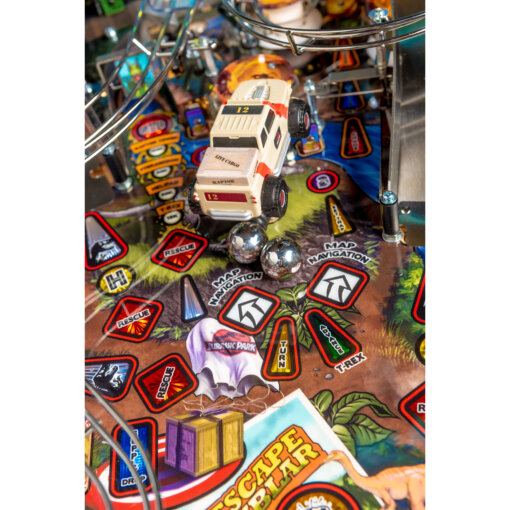 The Jurassic Park Pro Pinball Machine by Stern Pinball delivers thrilling gameplay inspired by the legendary blockbuster franchise Jurassic Park. Designed for fast flow and exciting mission-based objectives, this Pro edition captures the adventure of surviving Isla Nublar while containing escaped dinosaurs and restoring order to the park. 🦖