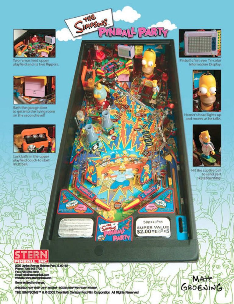 The Simpsons Pinball Party Machine by Stern is a highly regarded classic inspired by the long-running animated television series. Designed by Keith Johnson, this machine captures the humor, characters, and chaotic energy of The Simpsons in an engaging pinball experience. Players explore Springfield while completing mission-based objectives, activating multiball modes, and interacting with iconic show elements.