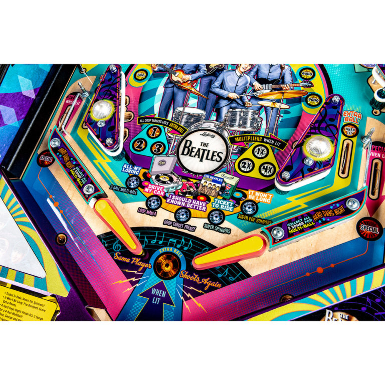 The The Beatles Gold Edition Pinball Machine is a highly collectible premium model inspired by the legendary band The Beatles. Manufactured by Stern Pinball, this Gold Edition combines classic pinball gameplay with one of the most influential music catalogs in history.