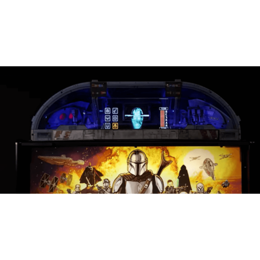 The The Mandalorian Pinball Topper by Stern is a premium accessory designed to elevate the gameplay and visual experience of Stern’s Mandalorian pinball machines. Inspired by the hit Star Wars series, this interactive topper sits on top of the backbox and adds stunning visuals, exclusive gameplay features, and immersive effects. Featuring a vivid 3D holographic display inspired by the Razor Crest cockpit, it brings players deeper into the Mandalorian universe while enhancing the overall arcade experience.