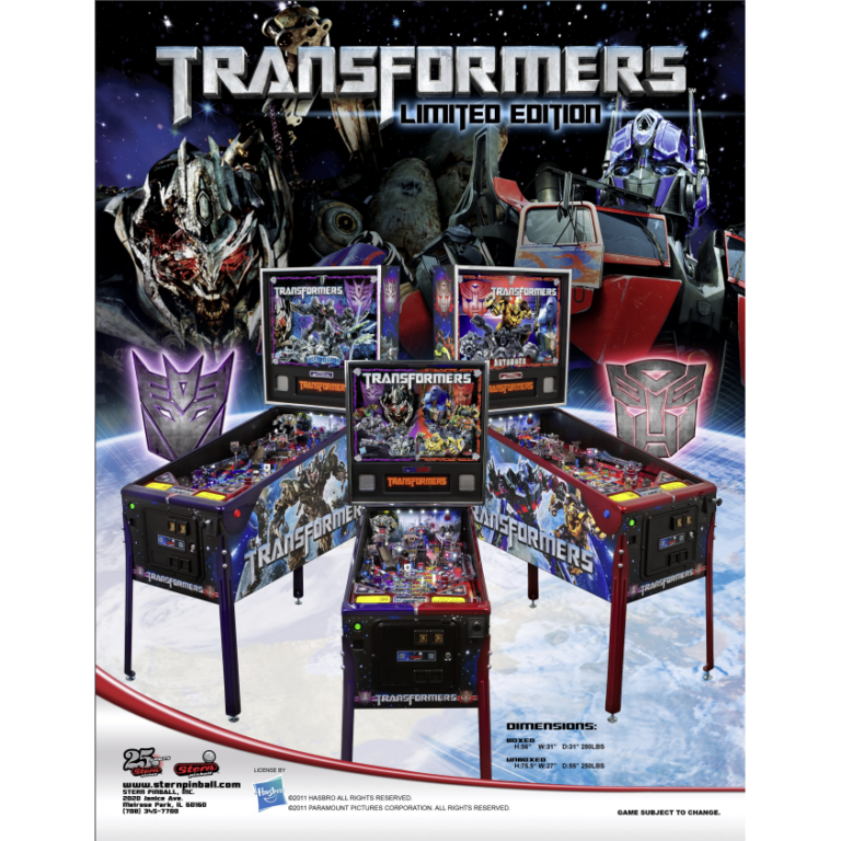 The Transformers Limited Edition Pinball Machine is a highly sought-after collector’s version of the iconic Transformers pinball series produced by Stern Pinball. Released in 2011, the Limited Edition (LE) model features enhanced artwork, exclusive design elements, and upgraded mechanical features that celebrate the legendary battle between the Autobots and Decepticons.