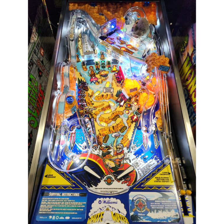 A high-end restoration typically includes full playfield cleaning and restoration, new rubber rings, upgraded lighting, refurbished mechanical components, and detailed cabinet touch-ups. The result is a machine that looks stunning and performs like new. Players enjoy fast-paced ramps, multiball action, interactive features, and the exciting whitewater adventure storyline that made the original a collector’s favorite.
