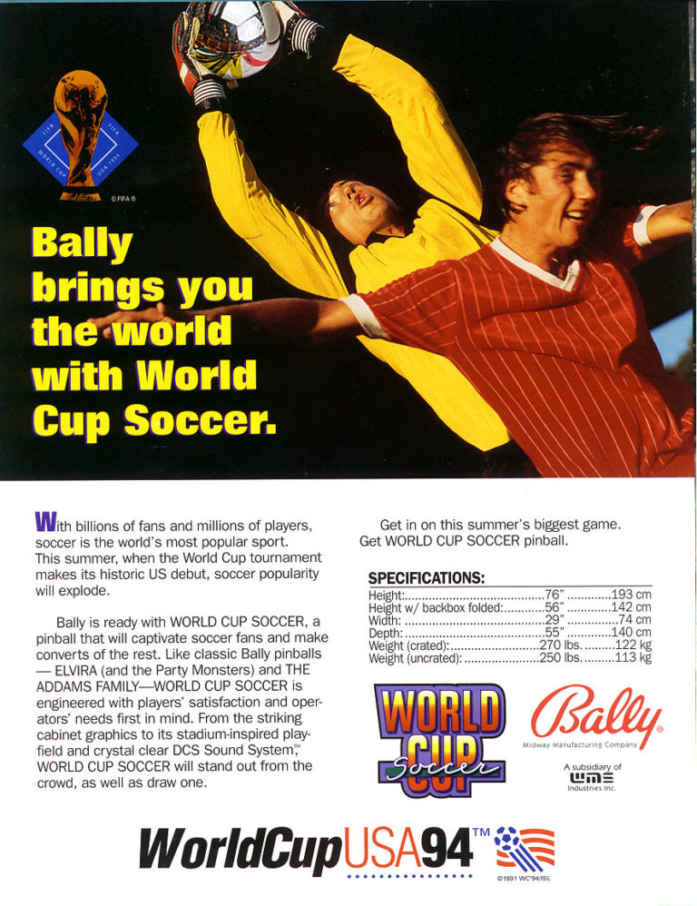The World Cup Soccer Pinball Machine is a legendary sports-themed pinball machine that captures the excitement of international soccer. Manufactured by Bally, this iconic game delivers dynamic gameplay, engaging features, and tournament-style competition inspired by the global World Cup event.